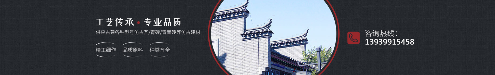主要產品有板瓦、簡瓦、地磚、面磚、磚雕、貓頭、滴水、三星脊、擋勾、花脊、花檐、窗花、翹腳、正吻等各種古建材。